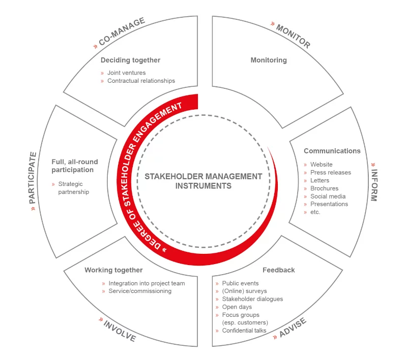 We aim to maintain an open and transparent dialogue with our stakeholders: That applies both to our personal contacts with them and to our websites, press releases, social networks and special formats such as analysts’ and press conferences. We take part in public discussions and other events, such as specialist energy industry conferences and public information events. Where necessary, we also involve stakeholders in our internal sustainability projects.