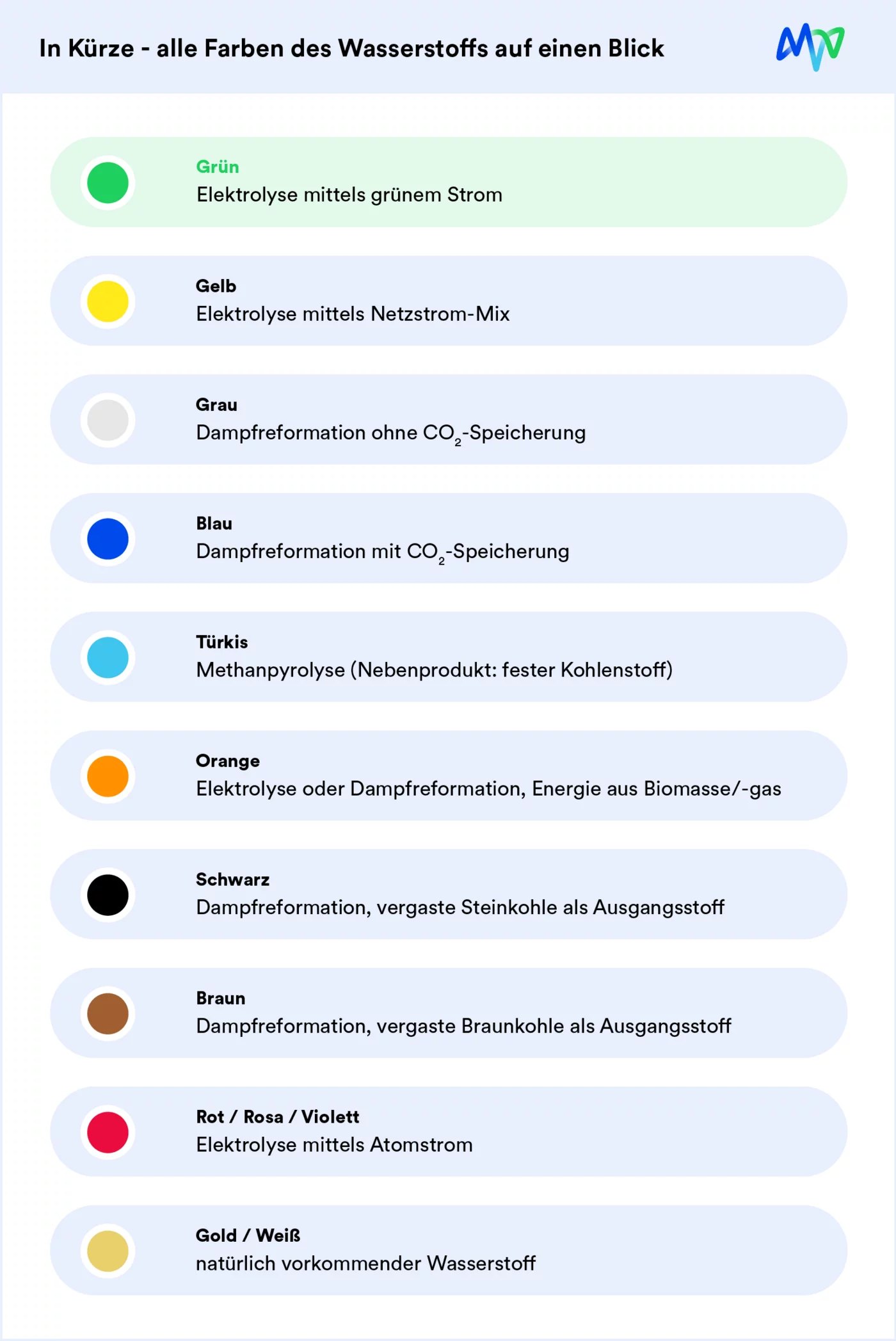 Grün, grau, gelb, blau... Wofür stehen die Farbcodes von Wasserstoff?
