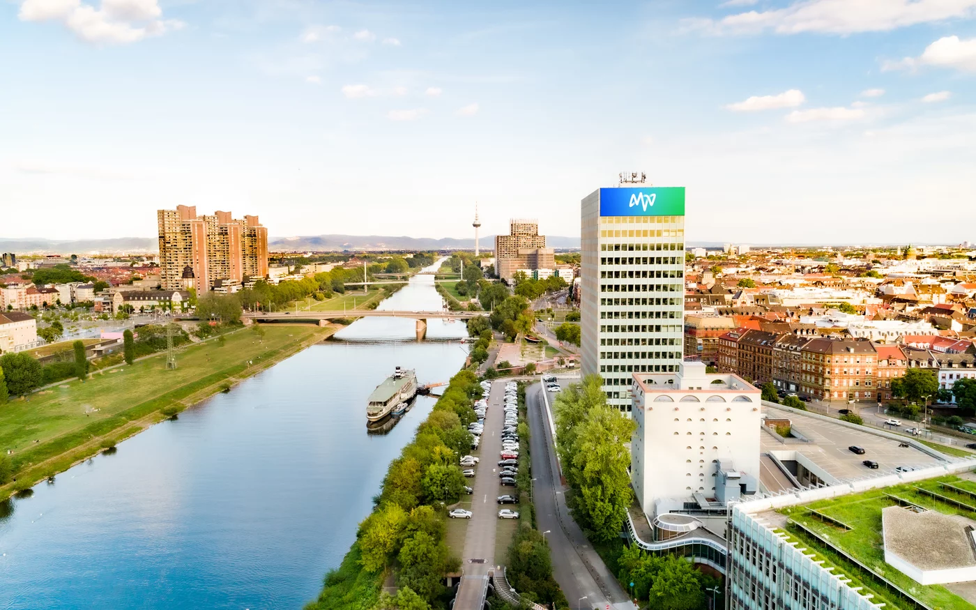 Unsere Konzernzentrale sitzt im markanten MVV-Hochhaus in Mannheim.