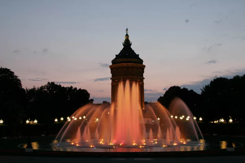 Frühjahrsputz rund um den Mannheimer Wasserturm am Friedrichsplatz: Mit Hochdruck bringen derzeit die Mitarbeiter von MVV Energie im Auftrag der Stadt Mannheim die Becken für die Sommersaison auf Vordermann, damit die Fontänen pünktlich zum Osterfest ab Karfreitag, 22. April 2011, wieder wie gewohnt bis zu 30 Meter in die Höhe schießen können. Doch bis dahin haben die Techniker noch alle Hände voll zu tun. Das Fontänen- und Kaskadenbecken sowie den Tritonen- und Atlantenbrunnen haben sie bereits gereinigt und witterungsbedingte Risse beseitigt. In den nächsten Tagen beginnen sie damit, die im Herbst eingelagerten und sorgsam überprüften 98 Unterwasserscheinwerfer, 16 Farbwechsler und 178 Düsen wieder einzubauen. Anschließend befüllen die MVV-Mitarbeiter die Becken mit rund 1,6 Millionen Litern enthärtetem Wasser. Ab Montag, 18. April, startet dann der Probebetrieb, sodass ab Gründonnerstag, 21. April, die Inbetriebnahme der Fontänenanlage abgeschlossen ist.
