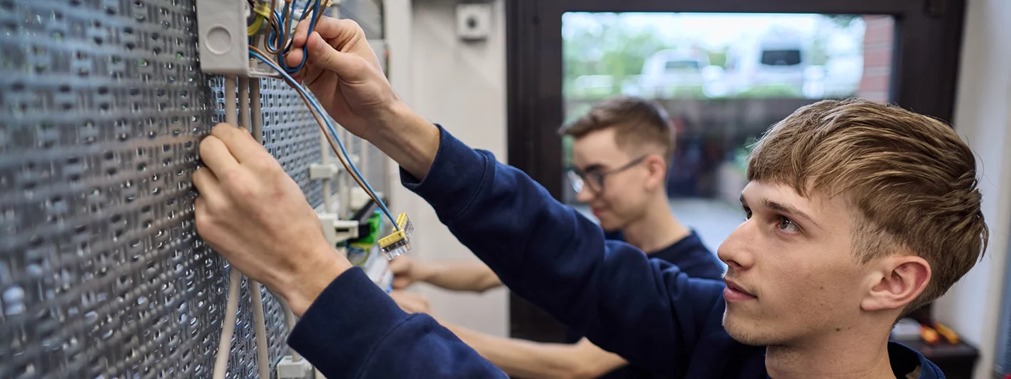 - Fundierte Grundausbildung in der Elektrotechnik und Steuerungstechnik in unserer eigenen Ausbildungswerkstatt