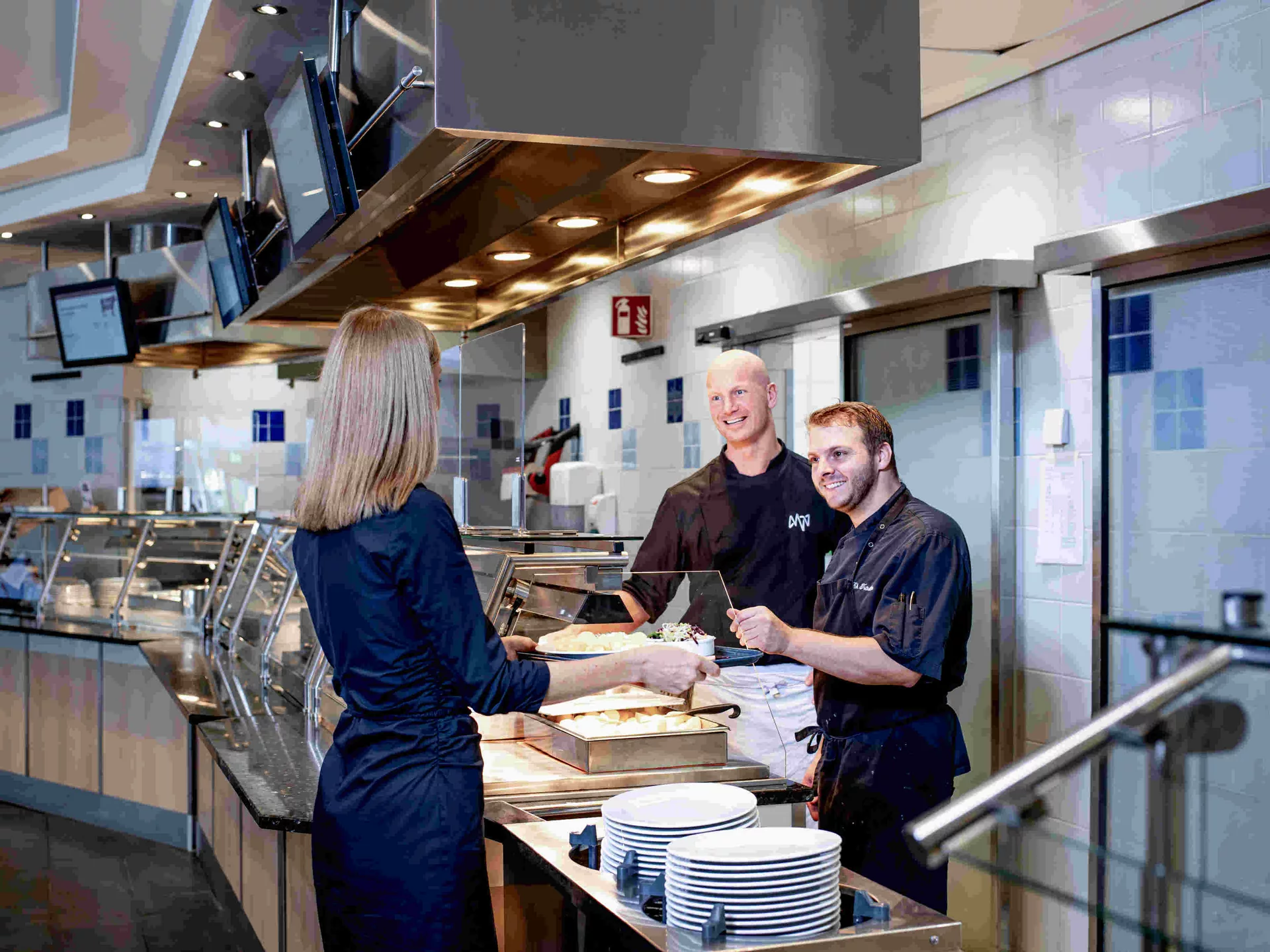 - Sie präsentieren und vermarkten die Speisen am Ausgabecounter optimal und führen bei Bedarf Frontcooking durch
