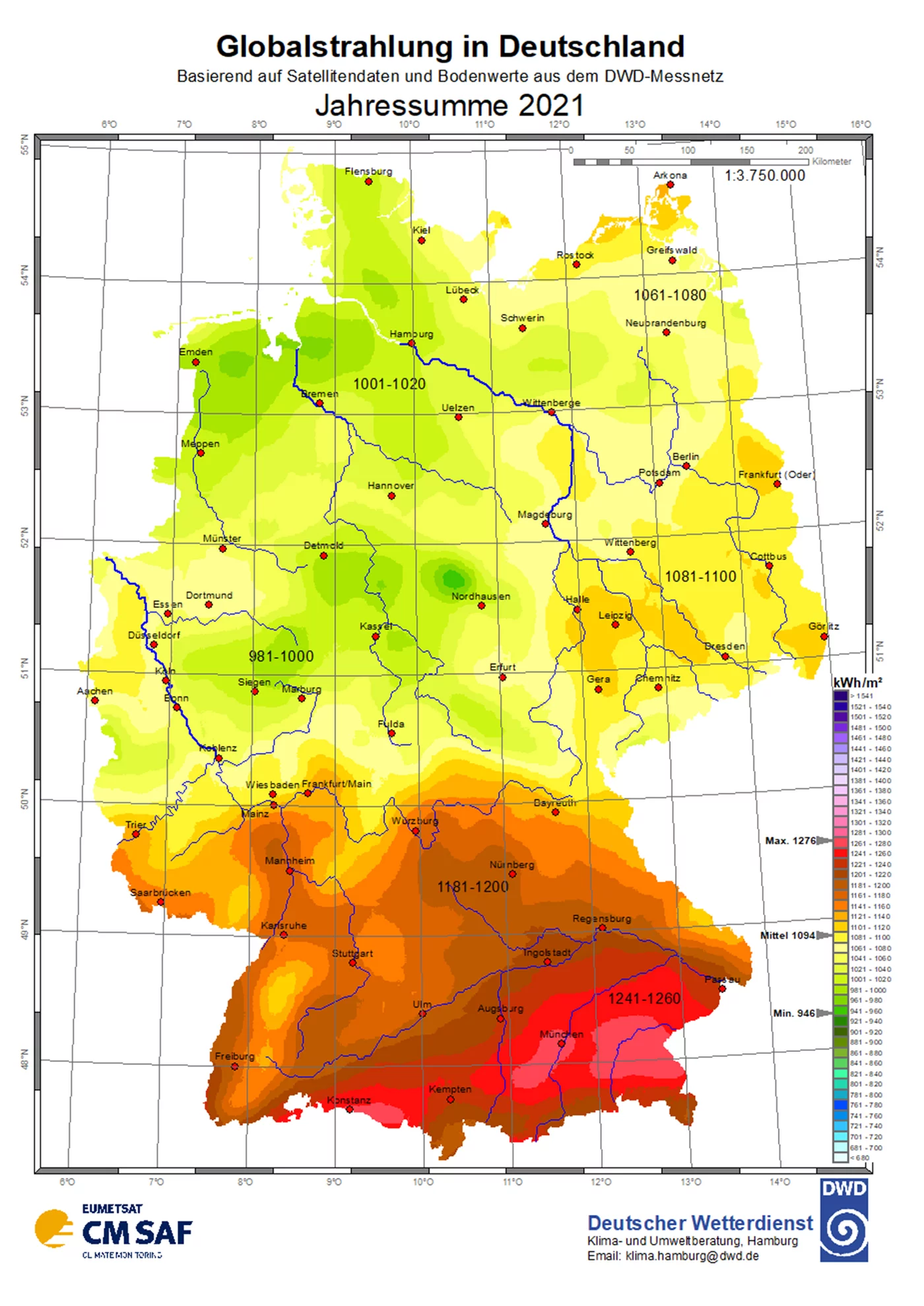 Sonneneinstrahlung: Höhere Solarerträge im Süden