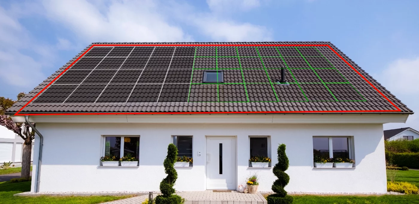 Die maximale Größe Ihrer PV-Anlage wird durch die verfügbare und geeignete Dachfläche begrenzt. Bestimmen Sie dafür die Länge und die Höhe der Dachfläche(n) und ziehen Sie Flächen für Dachfenster, Gauben, Antennen und verschattete Bereiche ab. Hilfreich ist hierbei ein Bauplan Ihres Hauses. Ist dieser nicht verfügbar, fertigen Sie sich idealerweise selbst eine Zeichnung Ihres Daches.