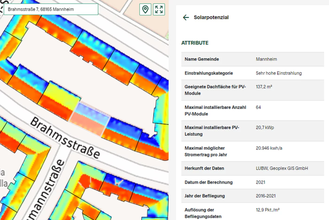 Übrigens: Konkrete Werte für Ihren Standort finden Sie in der Einstrahlungskarte vom Deutschen Wetterdienst sowie in den Solarkatastern der einzelnen Bundesländer. In den Solarkatastern können Sie nach einer konkreten Adresse suchen und finden hier bereits eine detaillierte Potenzialanalyse für Ihr Dach!