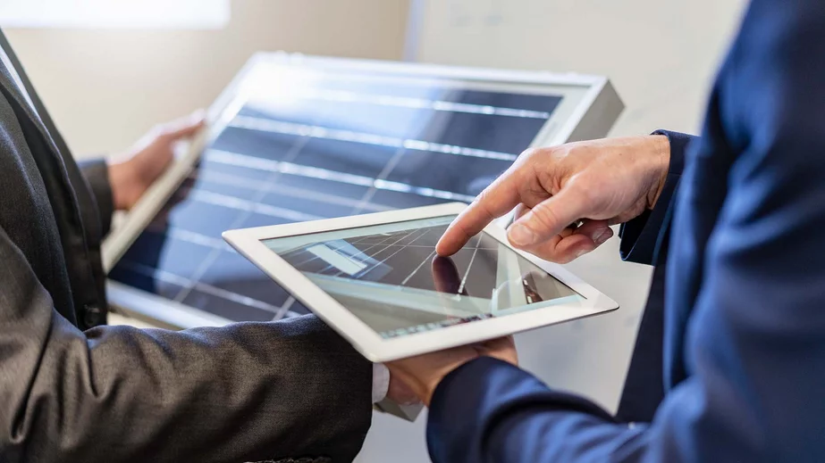 Tipp: Mit der Sales App der MVV kann Ihr Berater direkt im Vor-Ort-Termin mit Ihnen gemeinsam Ihre PV-Anlage konfigurieren. Dank der Einbindung von Fotos kann die Dachbelegung mit PV-Modulen visualisiert werden. So sehen Sie bereits in der Angebotsphase, wie Ihr Dach mit PV-Anlage aussehen wird und wie viele Module auf Ihr Dach passen.