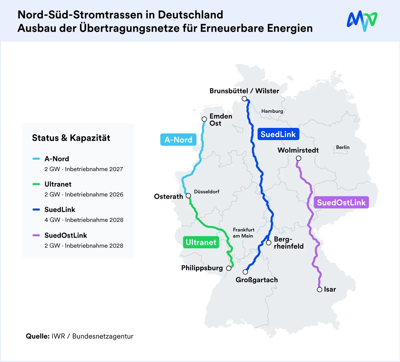1. Ausbau der Nord–Süd-Höchstspannungsleitungen (Übertragungsnetz)