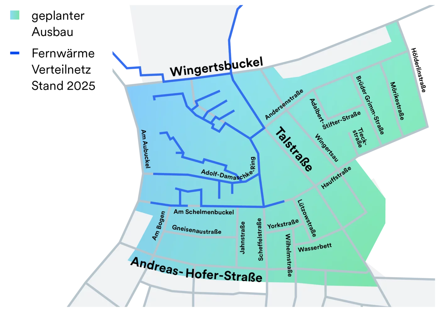 Bei Erfüllung der Mindestanschlussquote je Straße und ggf. vorgelagerter Straßen ist der Fernwärme-Ausbau für 2028/2029 geplant.